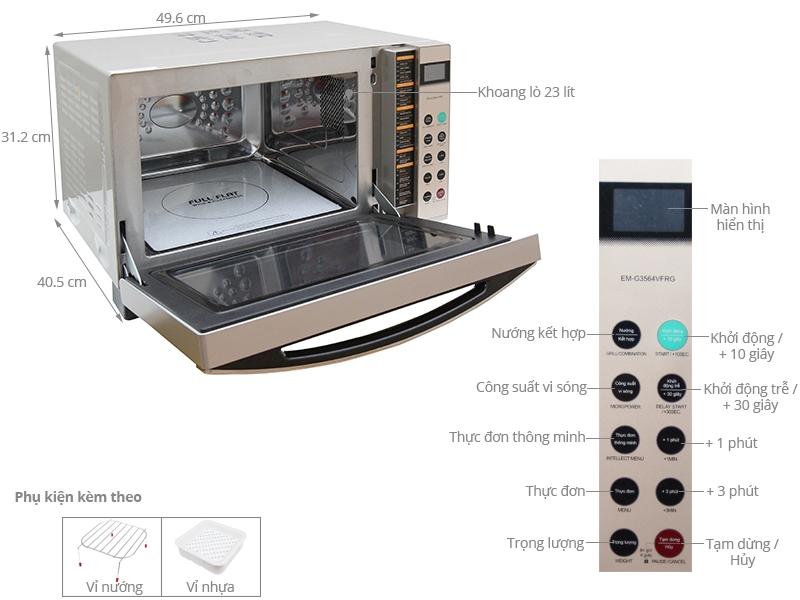 - Dung tích đa dạng với công suất vi sóng/nướng: 900W/1750W