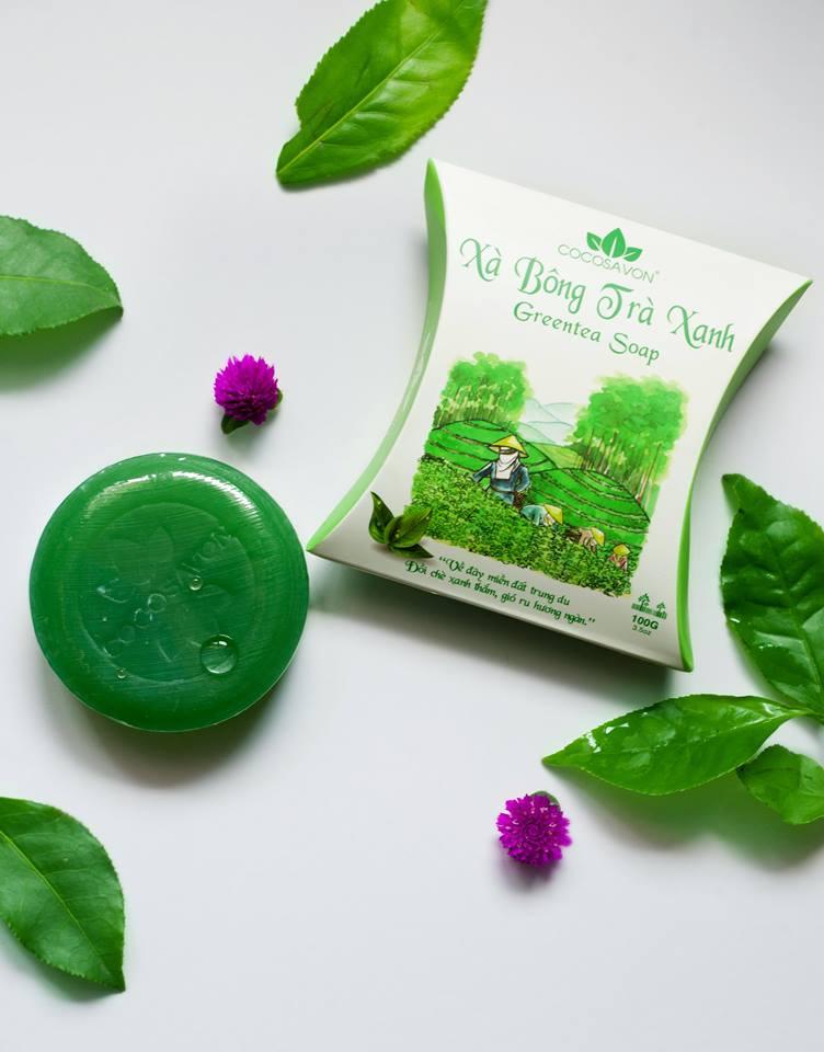 Xà bông trà xanh Cocosavon - Xà bông dừa có nguồn gốc từ nước dừa và dầu dừa tinh khiết, có mùi thơm dịu nhẹ, là chất làm đẹp.
