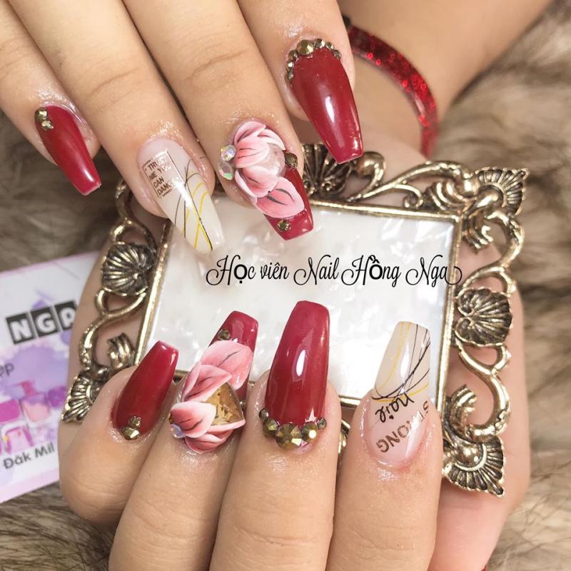 Tại Nail Hồng Nga, móng tay nail nghệ thuật dù được thiết kế từ những hình ảnh hoa cỏ thiên nhiên hay những họa tiết đơn giản cũng đều tạo nên sự lôi cuốn và hấp dẫn tuyệt vời. Với kinh nghiệm của người thợ nhiều năm trong nghề cộng thêm lối vẽ nghệ thuật điêu luyện đã khiến bất cứ mẫu móng nào ra đời cũng trông như những bức tranh sơn mài, tranh lụa cực hay.