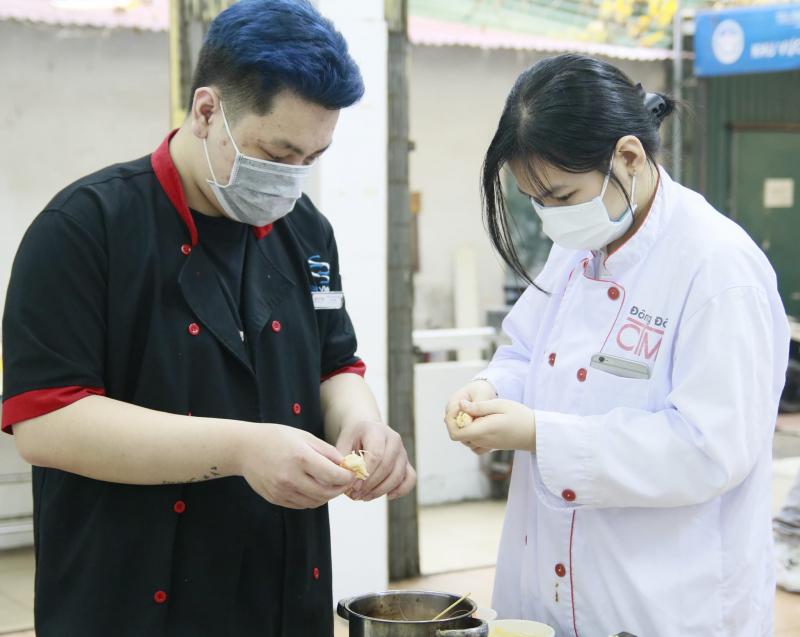 Gọi điệnĐược thành lập từ năm 2002, trường Trung cấp Công nghệ và Quản trị Đông Đô đã trở thành địa chỉ dạy nấu ăn được nhiều sinh viên tin tưởng. Chương trình đào tạo trung cấp nấu ăn của trường tập trung vào việc đào tạo tay nghề cho sinh viên, tăng cường thời gian học các môn thực hành. Các bạn sinh viên sẽ được học và rèn luyện tay nghề từ những kỹ năng cơ bản như: cách sử dụng các loại dao trong bếp; cách lựa chọn và sơ chế nguyên liệu; kỹ thuật cắt tỉa, trang trí… cho tới các kỹ năng nấu nướng. Các lớp trung cấp nấu ăn có thời gian học buổi sáng hoặc cuối tuần phù hợp cho các bạn sinh viên ở các tỉnh và thành phố xa tới học.