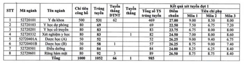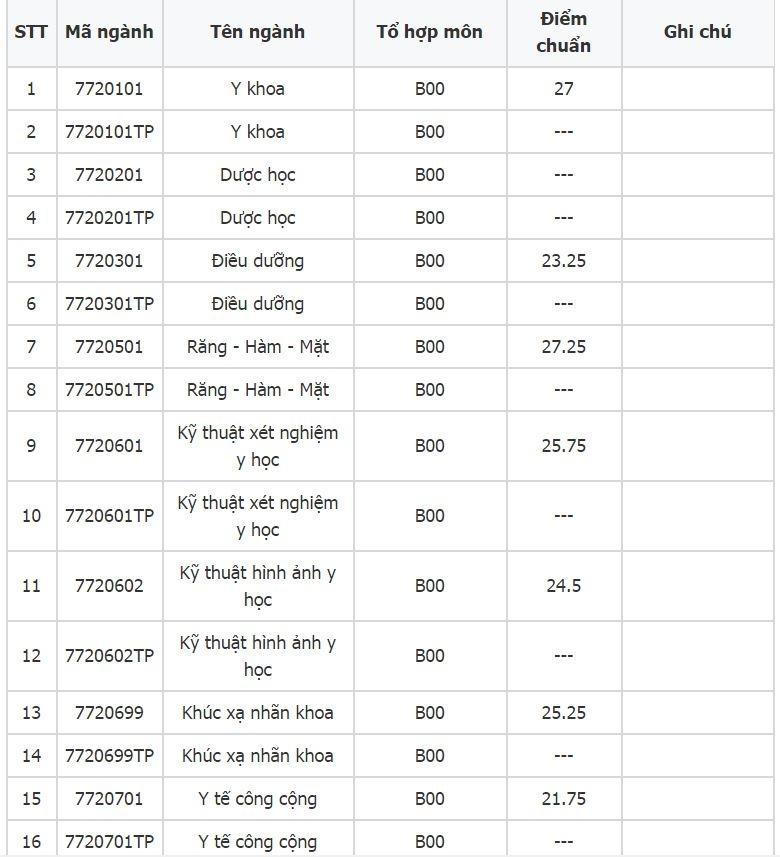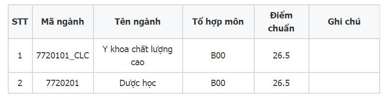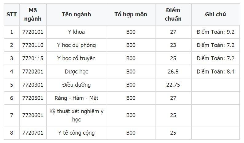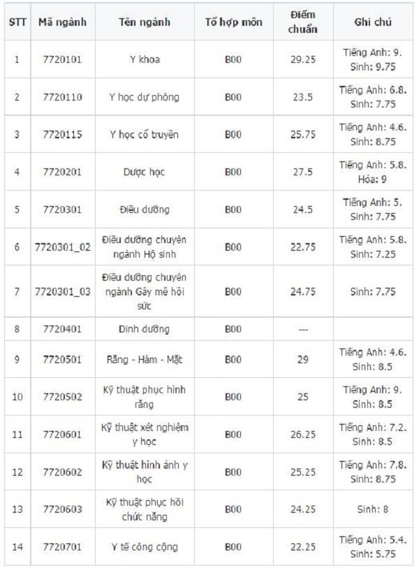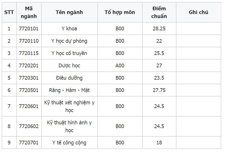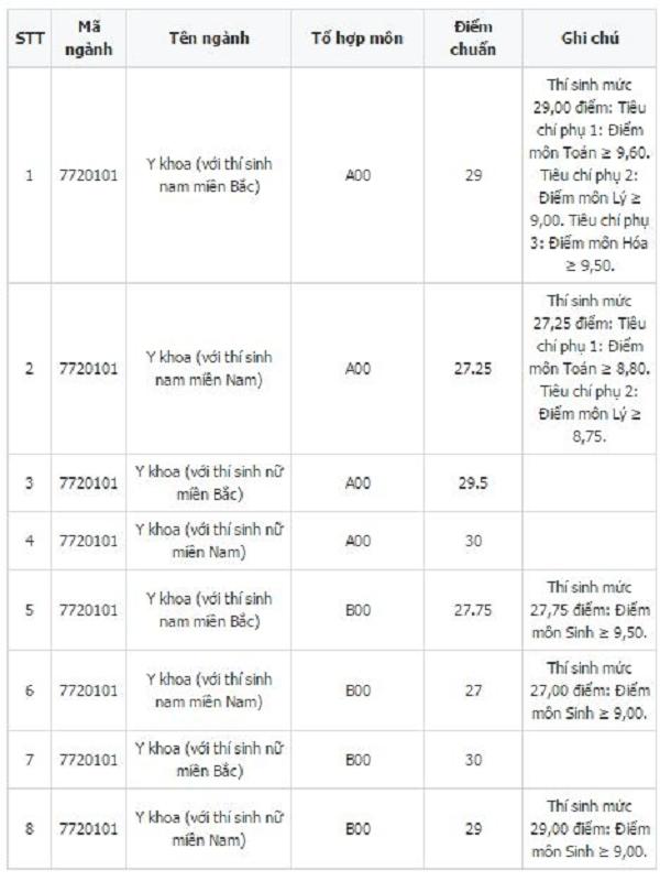 - Ngành Y khoa (tổ hợp B00): 28,13 điểm.