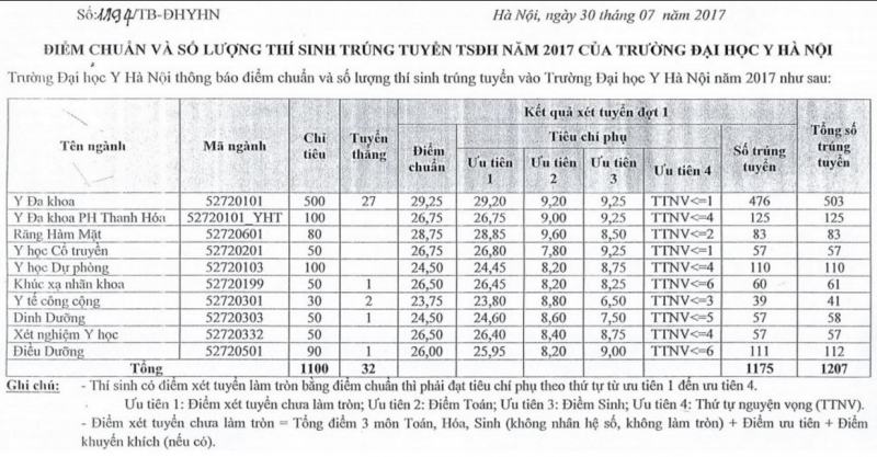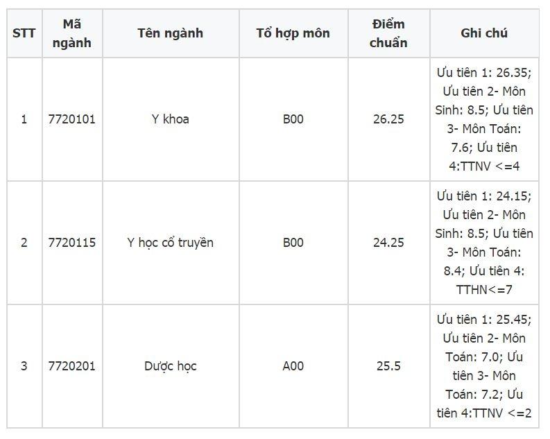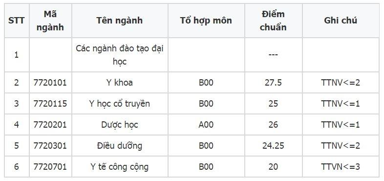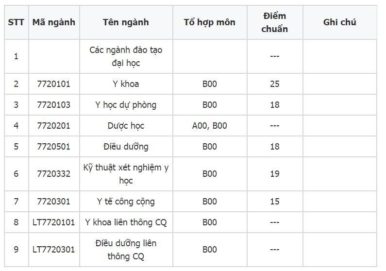 - Các ngành khác có điểm chuẩn thấp hơn, ví dụ: Y học dự phòng, Công tác xã hội, Điều dưỡng phân hiệu Thanh Hóa: 17 điểm.