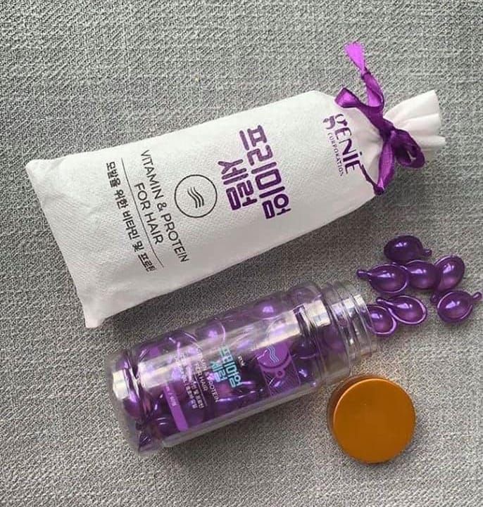 Tinh Dầu Dưỡng Tóc Genie Vitamin Protein For Hair đến từ Hàn Quốc được nhiều người dùng trên thế giới ưa chuộng. Sản phẩm có hương thơm dịu nhẹ cùng thành phần giàu dưỡng chất mang lại hiệu quả cao. Viên dưỡng tóc giúp tóc đẹp khỏe mà không gây bết dính, không làm da đầu bị gàu hay khiến tóc bết nhanh. Ngoài ra thành phần trong serum còn giúp tiêu diệt vi khuẩn trên tóc và da đầu, giảm các bệnh về tóc.