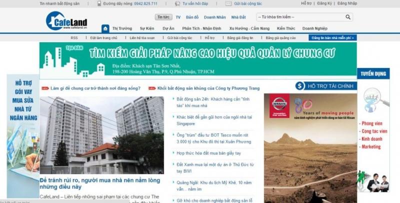 CafeLand.vn với các danh mục mua bán nhà đất, cho phép khách hàng đăng tin tại website và thu phí tùy theo loại tin tức thường hay tin vip. Các danh mục của cafeland được phân chia rất hợp lý, chi tiết, tất cả các tài sản được đăng lên phải thông qua hệ thống kiểm duyệt với thông tin cụ thể, rõ ràng, hữu ích cho độc giả và khách hàng.
