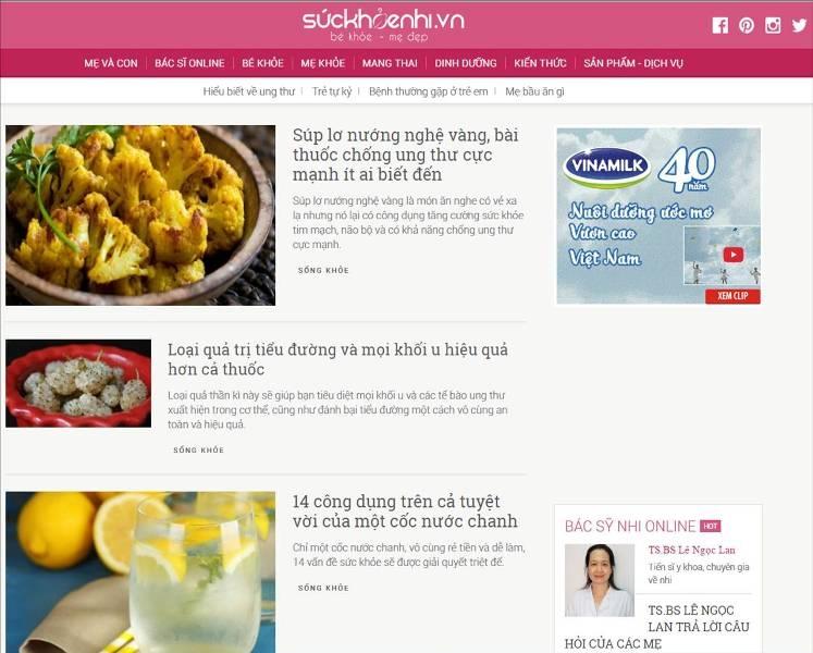 Đặc biệt, chuyên mục thực đơn dinh dưỡng sẽ đem đến cho bạn những thông tin về chế độ ăn, khẩu phần ăn, các loại thực phẩm tốt cho sức khỏe trong từng bữa ăn cho cả gia đình. Thông tin các bài viết luôn được cập nhật liên tục dựa vào thời tiết, mùa... Ngoài ra, các sản phẩm bổ sung dinh dưỡng cho gia đình Việt cũng được trang web này giới thiệu, cập nhật xu hướng ăn sạch, uống sạch, khỏe từ bên trong là một trong những xu hướng để trang web này được nhiều người tìm kiếm.
