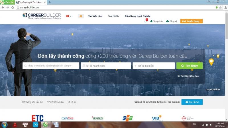 Careerbuilder là trang web tuyển dụng được sở hữu bởi careerbuilder Mỹ. Với công nghệ tiên tiến và mạng lưới toàn cầu, careerbuilder giúp kết nối nhiều nhà tuyển dụng với các ứng viên tiềm năng và chất lượng, hỗ trợ nhiều doanh nghiệp tìm được nguồn nhân lực ưu tú và người tìm việc tìm thấy công việc phù hợp. Trang web này yêu cầu chất lượng ứng viên khá cao, nhưng nếu bạn tự tin với khả năng của mình thì dù mới ra trường bạn cũng có cơ hội tìm được một công việc tốt.